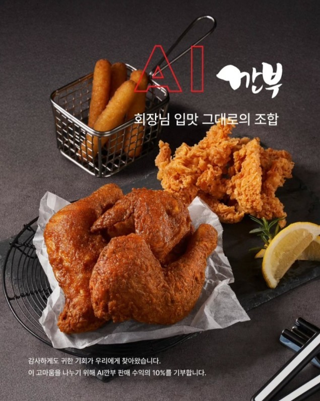 이번 ‘AI깐부 세트’는 최근 젠슨 황 엔비디아 CEO, 이재용 삼성전자 회장, 정의선 현대자동차그룹 회장의 이른바 ‘치맥 회동’ 당시 테이블에 올랐던 메뉴 구성을 그대로 담은 것이 특징이다. 메뉴는 ▲바삭한 식스팩 ▲크리스피 순살치킨 ▲치즈스틱 등 세 가지로 구성됐다. 깐부치킨 측은 “회장님들이 즐긴 바로 그 맛을 고객들이 함께 경험하길 바란다”며 “판매 수익의 10%를 기부해 사회적 나눔을 실천하겠다”고 밝혔다.