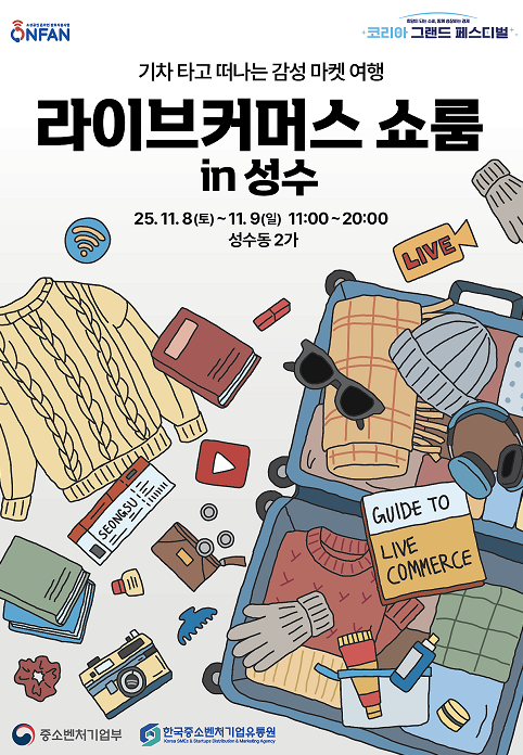 중소벤처기업부와 한국중소벤처기업유통원(이하 한유원)은 국내 소상공인들의 우수 제품을 알리고 실질적인 온라인 판로 확대를 지원하기 위한 ‘2025 라이브커머스 쇼룸’을 오는 11월 8일부터 9일까지 서울 성수동에서 개최한다고 밝혔다. 올해로 이어지는 이번 행사는 실시간 소통 기반의 라이브커머스 시장 확대 흐름 속에서 소상공인과 소비자를 직접 연결해 현장 체험과 온라인 판매 성과를 동시에 도모하는 자리로 마련됐다.