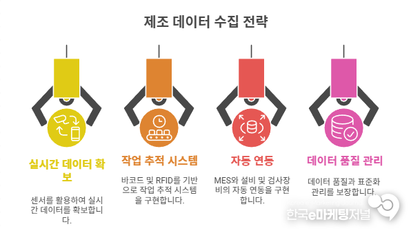 네 번째는 데이터 품질과 표준화 관리이다. 자동수집이라도 데이터 형식이 제각각이면 분석에 활용할 수 없다. 공정 코드, 설비 명칭, 불량 코드, 검사 기준 등을 표준화해 시스템 간 호환성을 높이는 것이 필수적이다.