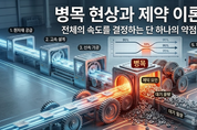 점심시간, 밥을 먹기 위해 급식실에 줄을 서 본 학생이라면 누구나 공감할 풍경이 있다. 밥이나 김치를 받는 곳에서는 줄이 쑥쑥 줄어들다가도, 돈가스나 소시지 볶음 같은 인기 반찬 배식구 앞에서는 꼭 교통체증처럼 줄이 꽉 막혀버린다. 밥을 1초 만에 아무리 빨리 퍼준다고 해도, 고기반찬을 나눠주는 데 10초가 걸린다면 결국 학생 한 명이 식판을 다 채우는 데 걸리는 시간은 10초가 된다. 생산관리에서는 이를 '병목 현상(Bottleneck)'이라고 부른다. 병목이란 물병의 좁은 목 부분을 뜻한다. 병의 몸통이 아무리 넓고 물이 가득 차 있어도, 물이 밖으로 쏟아지는 속도는 결국 가장 좁은 병목의 크기가 결정한다. 공장이나 기업의 생산 시스템도 마찬가지다. 이를 설명하는 것이 바로 제약 이론(TOC, Theory of Constraints)이다. 제약 이론의 핵심은 '전체 시스템의 생산 속도와 능력은 가장 느린 공정(병목) 하나에 의해 결정된다'는 것이다. 스마트폰을 만드는 공장을 상상해 보자. 화면을 조립하는 데 1분, 배터리를 끼우는 데 1분이 걸리지만 카메라 모듈을 장착하는 데 5분이 걸린다면, 이 공장에서는 아무리 기를 써도 5분에 1대씩밖에 스마트폰을