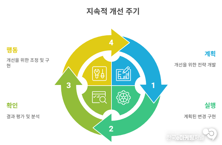 공정개선의 핵심은 지속적 개선(Continuous Improvement, CI) 개념이다. 이는 한 번의 대대적인 변화보다, 매일 조금씩 나아지는 개선을 꾸준히 실천하는 것이다. 대표적인 방법이 PDCA(Plan-Do-Check-Act) 사이클이다.