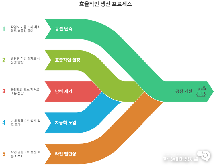 공정개선은 생산현장에서 가장 기본이자 가장 어려운 과제이다. 단순히 일을 빠르게 하는 것이 아니라, 불필요한 낭비를 줄이고 품질과 효율을 함께 높이는 것이 목표이다. 아무리 좋은 설비를 갖추고 최신 기술을 도입하더라도, 공정이 비효율적이면 생산성은 오르지 않는다. 따라서 공정개선은 기업이 지속적으로 성장하기 위한 필수적인 활동이다.