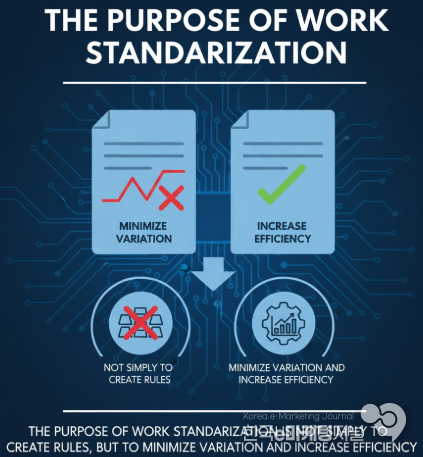작업표준화의 목적은 단순히 규칙을 만드는 것이 아니라 변동을 최소화하고 효율을 높이는 것이다.