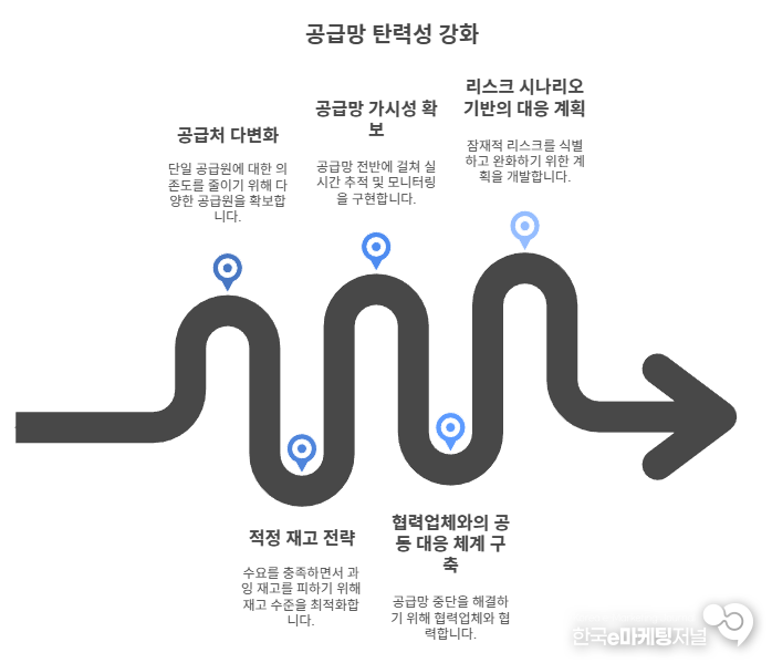 네 번째는 협력업체와의 공동 대응 체계 구축이다. 정보 공유, 수요 예측 협력, 공동 구매 등 협력 수준을 높이면 전체 공급망의 안정성이 강해진다. 특히 중소기업은 협력사와의 관계가 곧 경쟁력이기 때문에, 정기적인 커뮤니케이션과 투명한 정보 공개가 중요하다.