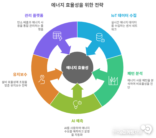 네 번째 전략은 설비 효율 중심의 유지보수이다. 막힘, 마모, 오염 등으로 설비 효율이 떨어지면 동일 작업을 위해 더 많은 에너지가 소비된다. 디지털 기반 예지정비(Predictive Maintenance)를 적용하면 설비 효율 저하를 조기에 파악해 에너지 낭비를 줄일 수 있다.