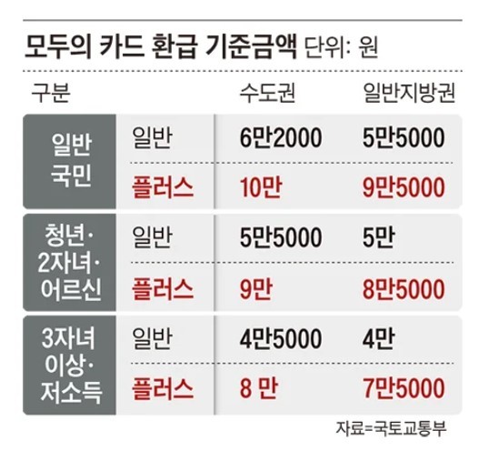 플러스형은 광역 교통수단 이용자가 대상이다. 수도권 성인 기준 월 10만원(만 65세 이상은 9만원)을 기준으로, 이를 초과한 교통비를 전액 환급한다. 광역버스, 신분당선, GTX(수도권 광역급행철도) 등 고가 교통수단도 포함돼 장거리 통근자나 수도권 외곽 거주자의 부담을 크게 줄일 수 있다.