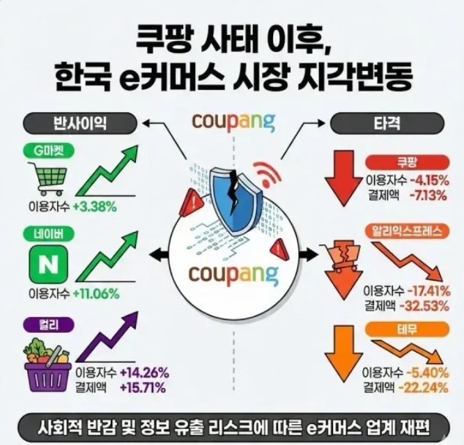 쿠팡의 대규모 개인정보 유출 사고 이후 e커머스 업계 전반에서 소비자 이동이 본격화되고 있다. 특히 신선식품과 새벽배송을 중심으로 이용 플랫폼을 변경하는 흐름이 나타나면서 주요 경쟁사들의 이용자 수와 주문, 거래액 지표가 눈에 띄게 개선되고 있다.