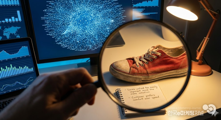 이때 데이터 분석가는 고객의 일상을 직접 관찰하는 스몰 데이터를 수집한다. 관찰 결과, 운동화 끈이 너무 잘 풀려서 불편해하는 고객의 사소한 행동을 발견할 수 있다. 이 작은 단서 하나가 디자인을 수정하고 다시 판매량을 올리는 핵심 열쇠가 된다.