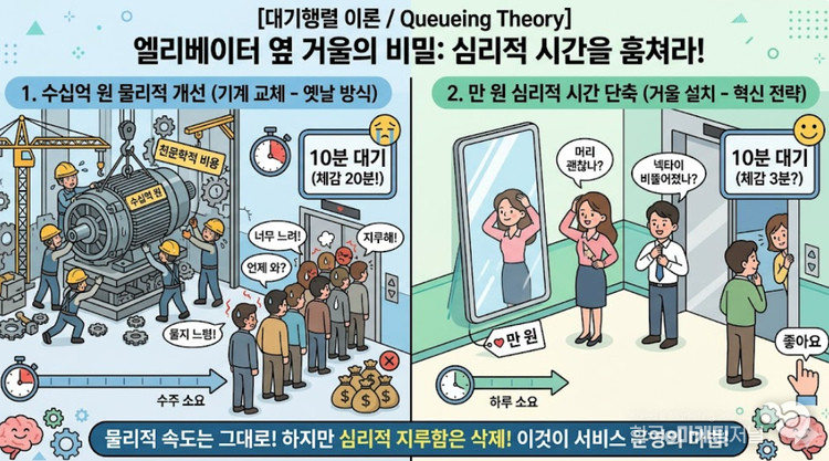 경영학과 서비스 운영 관리에서는 이 거울을 '대기행렬 이론(Queueing Theory)'이 적용된 가장 위대하고 저렴한 발명품으로 꼽는다.