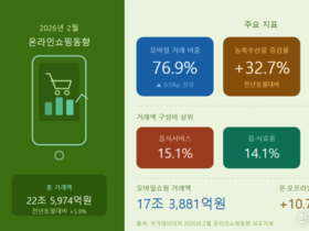 2026년 2월 온라인쇼핑 거래액 22조 5,974억원…농축수산물 32.7% 급증·모바일 비중 76.9%